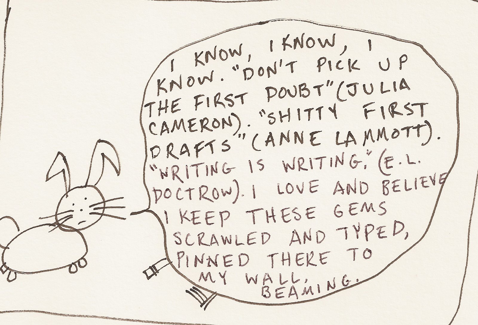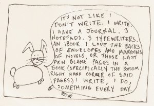 1. courtney i love your bunny strip . strip of bunny funny. i want to read more of your writing oops after all that i blindly ask for MORE writing as if i’ d understood nothing at alll. having the same brain hurts some t]mes. but it can also be a thrill….