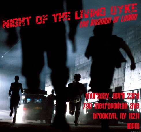 Thursday I lived dangerously and went out on a schoolnight. Music blogger muthafunka (of Liz Feldman’s This Just Out fame) was hosting/djing a dyke takeover of legion bar in east Williamsburg. The flyer popped up on twitter here and there. What would it like to leave the internets and meet up with these people?