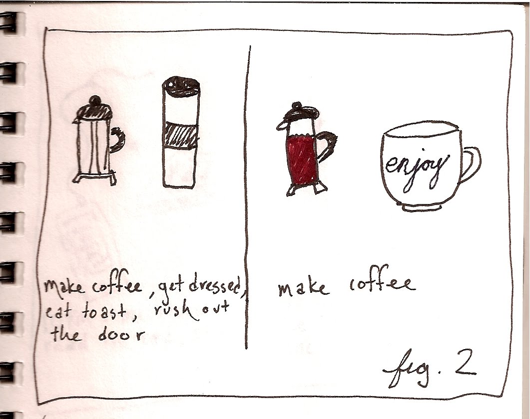 here is a small comic about it. for the record, my french press does not usually resemble an eagle wearing a beret, and my head is not that big.