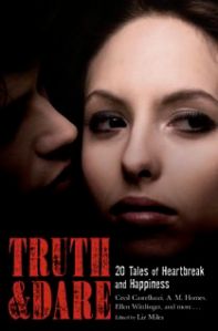 The cover art for the UK and US editions of a new YA anthology I’ve contributed to is out! The book, Truth and Dare; 21 Stories of Heartbreak and Happiness (or if you’re across the pond, Truth and Dare: Love, Life and Falling on Your Face) is edited by Liz Miles and coming out in May. There’s a heap of mind blowing talent contributing, including A.M. Homes, Emma Donoghue, Ellen Wittlinger, Gary Soto, Matthue Roth, and Cecil Castellucci. Check it: